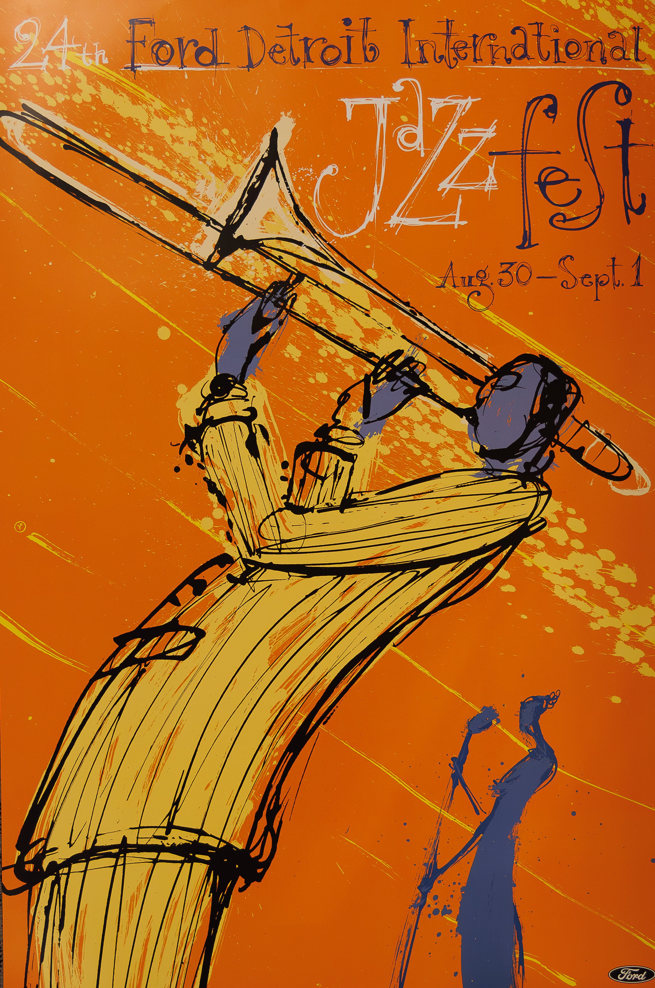 24TH ANNUAL FORD DETROIT INTERNATIONAL JAZZ FESTIVAL POSTER 2003 (Trombone version, orange)